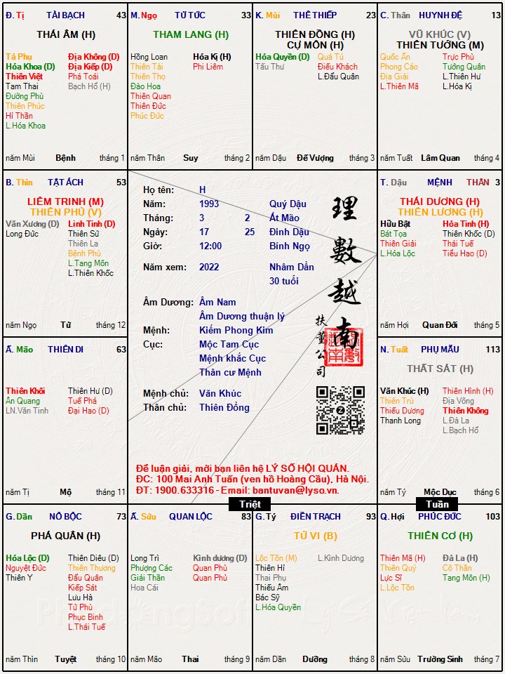 Thathu đã viết: 00:49, 06/04/22 Kính nhờ bác @dunglanchin xem lá số tử vi của cháu với ạ. Bác có thể nói cho cháu biết về cubg tài bạch và cubg quan lộc của cháu nói lên điều gì dc không ạ. Và cung thê nữa, vợ cháu sẽ là người như thế nào, cháu sẽ kết hôn vào năm nào ạ. Cháu cảm ơn bác.