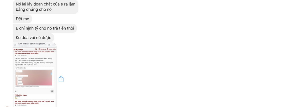 Haiz tưởng anh lên fb thanh minh thanh nga ra vẻ ta đây vô tội bị oan ức nên ra mặt đăng 1 bài đọc nghe hay lắm. Rốt cuộc đặt lịch vs bác Ong Noi Quynh rồi ko dám ra gặp, nói miệng thôi rồi trốn luôn. Đưa ra bao lý do như ATM bị lỗi SMS, CMND ko sử dụng đc, bị người ta mạo danh fb, rồi đòi về Bắc làm lại căn cước. Hết lý do này đến lý do khác đòi qua mặt 80k thành viên của group hả, ai tin đc. Hẹn gặp mặt cho cố zô rồi nhắn bảo đi Đồng Nai. Đi đc thì hẹn, ko dám đi mà bày đặt lên đòi gặp. Nếu có gan thì ra gặp rồi, có cái người nào làm sai mới phải trốn và thất hứa như vậy. Nhớ lên fb giải thích thêm bài nào dài hơn nữa nhé.