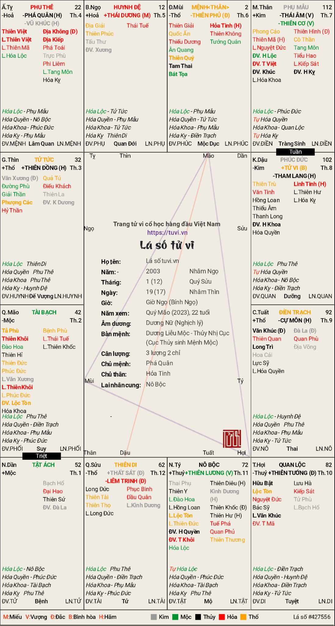 Đây là chuyên mục dành cho việc xem lá số tử vi. Các bài mang tính trao đổi học thuật xin vui lòng đăng trong mục Kiến thức tử vi.