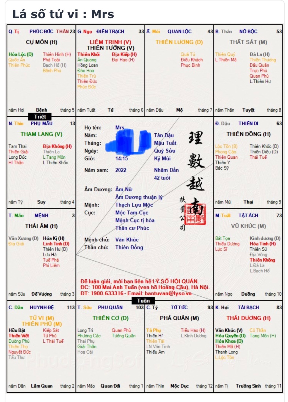 Hoasenn đã viết: 23:21, 19/08/22 Đấy là lá số của e, kính nhờ các bác xem cho em cung tử túc. Em về sau được nhờ con ko ạ. Em cảm ơn nhiều ạ!