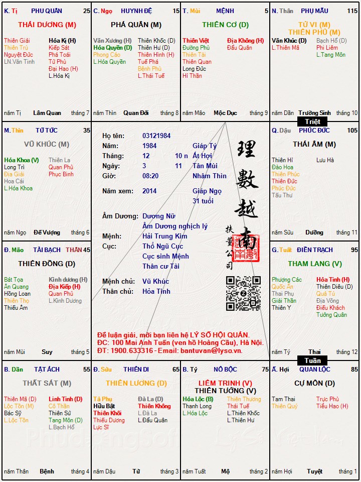 Đây là chuyên mục dành cho việc xem lá số tử vi. Các bài mang tính trao đổi học thuật xin vui lòng đăng trong mục Kiến thức tử vi.