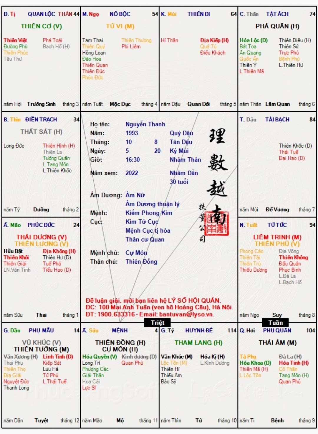 vunguyenvund1993 đã viết: 00:45, 18/09/22 Kính nhờ cao nhân luận giải giúp lá số cung tài bạch VCD, các sao phụ tinh toàn sao xấu ạ