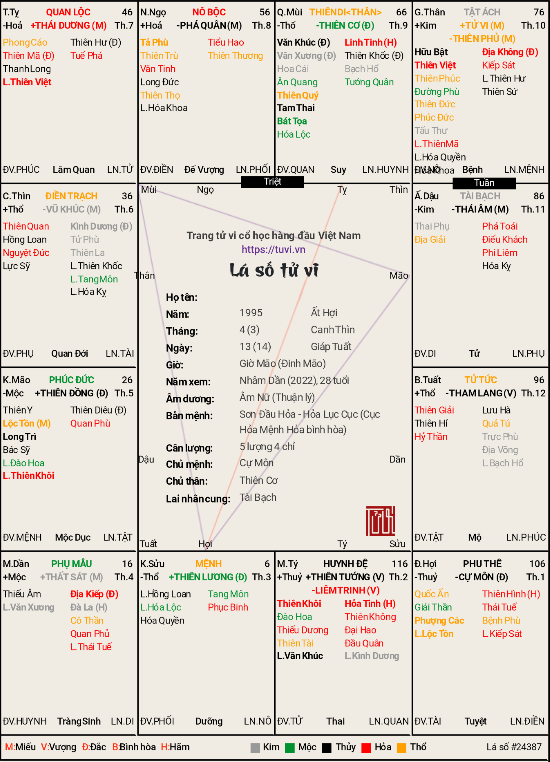 Cháu sinh ngày 13.04.1995 DL lúc 6h sáng tại miền Bắc
