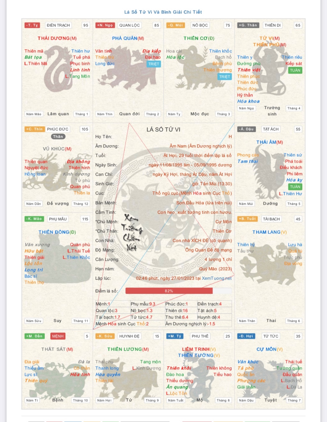 Lá số bạn lấy hơi khó xem , nhìn mất nhiều thời gian , mà các vị trí đặc tính ko hiển thị rõ như mẫu ở diễn đàn . Bạn nên lập lá số theo mẫu diễn đàn !