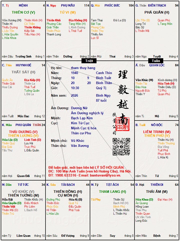 Đây là chuyên mục dành cho việc xem lá số tử vi. Các bài mang tính trao đổi học thuật xin vui lòng đăng trong mục Kiến thức tử vi.