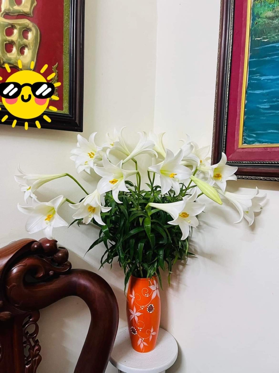 Lọ hoa loa kèn của chị htrc cắm giờ nờ full bông rùi nè