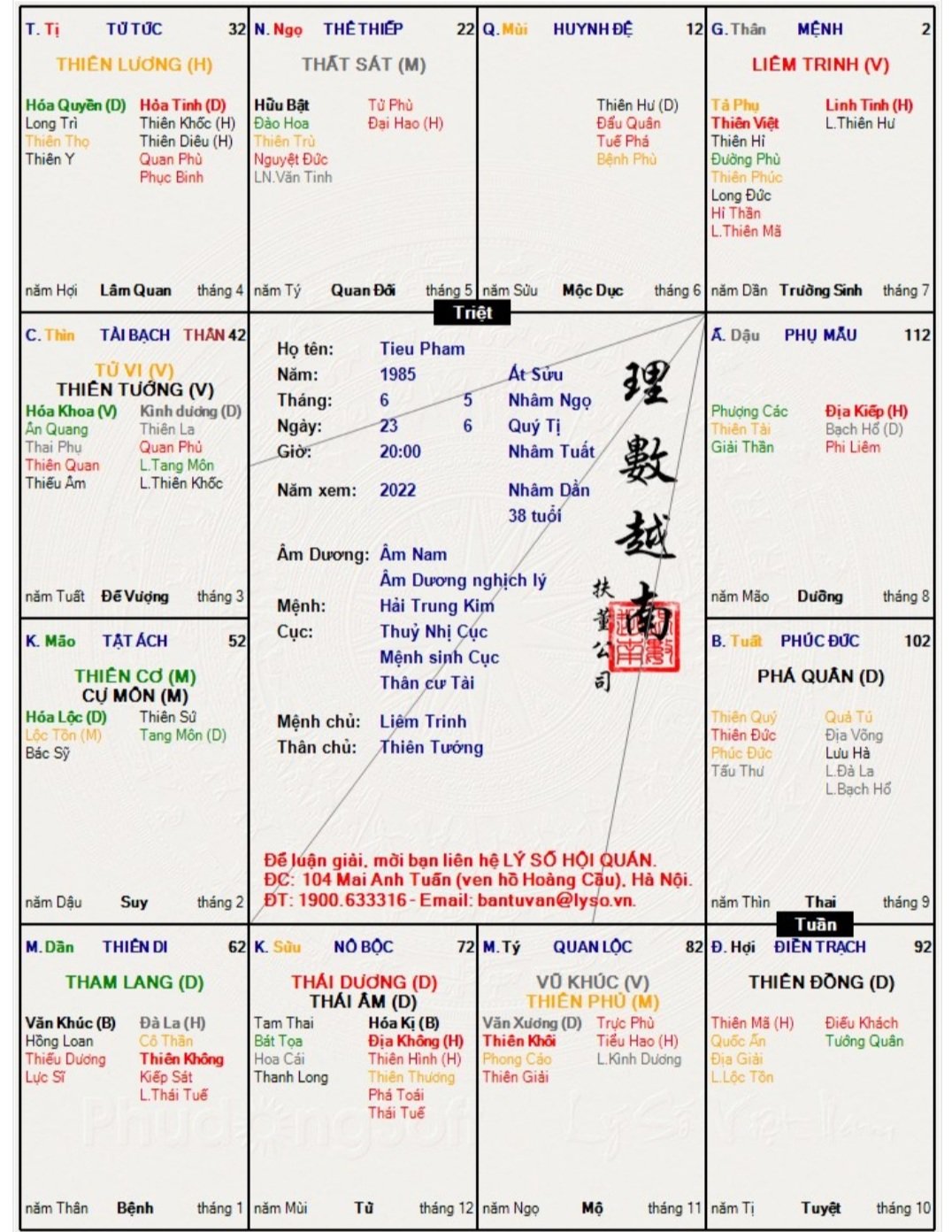 Tieu Pham đã viết: 08:09, 02/01/22 Các cao nhân cho em hỏi, lá số này có đắc được cách cục " Hùng tú triều viên" và "Tam hoá liên châu" không ạ? Qua 3 năm liên tiếp không hề dễ dàng,liệu năm 2022 em có thể có bước đột phá nào không ạ? Xin chân thành cảm ơn.