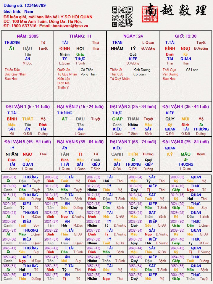 Bác này là cao nhân!ĐỗVạnThông đã viết:Có theo nghiệp tu hành hay không là do duyên số, chứ không phụ thuộc vào ý chí của chúng ta!.Kandy Đào đã viết:Cảm ơn bác Thông đã luận giải giúp ạ. Đây là lá số của em trai cháu, là con cầu tự nên khi sinh ra bố cháu phải bắc ghế hầu Thánh để tạ. Nếu như bác nói theo con đường tu thành rất thành công liệu có phải là vào chùa đi tu không ạ. Bác có thể luận giải để cháu được rõ hơn không bác. Vậy là để em cháu lên chùa tu hành chứ không nên sống cuộc sống của ng trần, vì sao lại thế ạ.