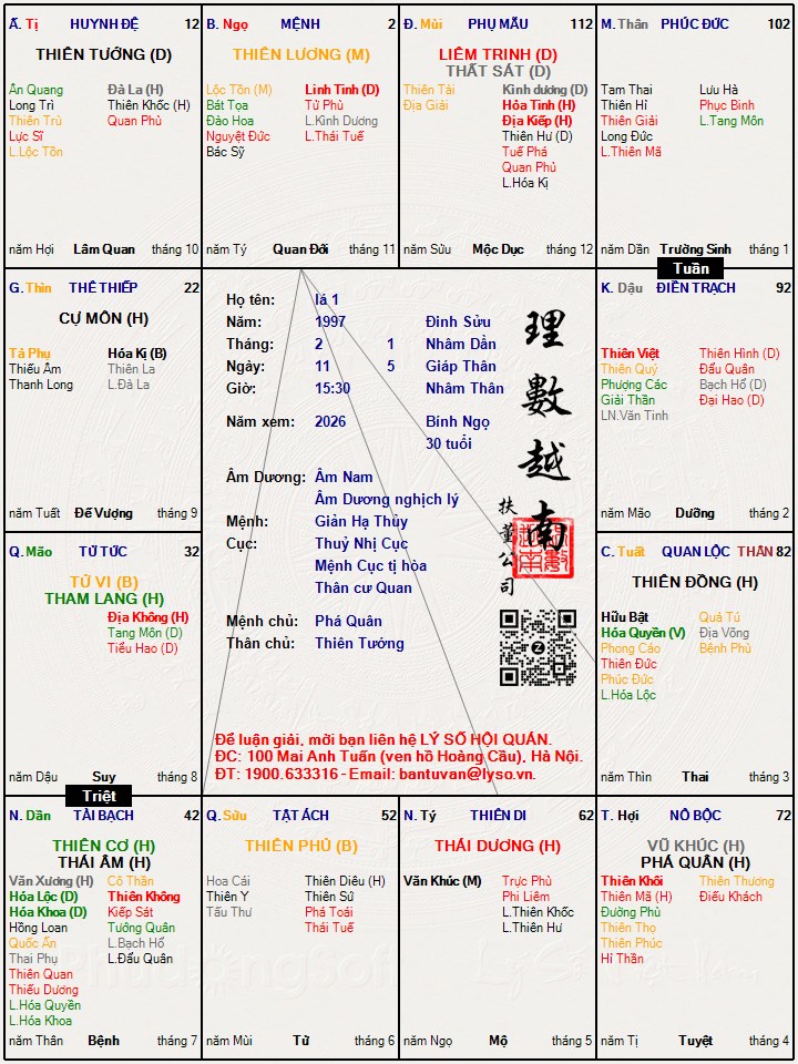 che lá số thì tự đi mà xem, lại còn lập bằng phần mềm của tên cao anh kia thì nghỉ cho khỏe