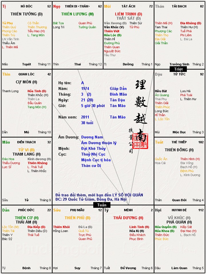 TL: Lá số này khi nào lấy vợ a! - Lá số có Thai Phục Vượng T