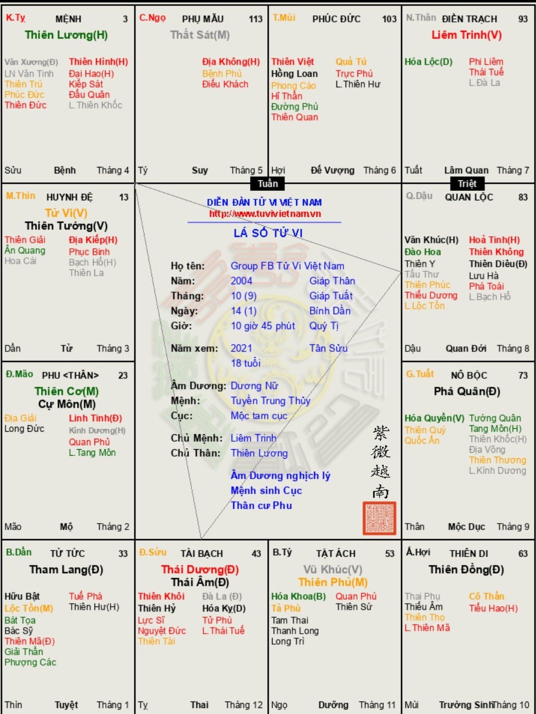 Đây là chuyên mục dành cho việc xem lá số tử vi. Các bài mang tính trao đổi học thuật xin vui lòng đăng trong mục Kiến thức tử vi.