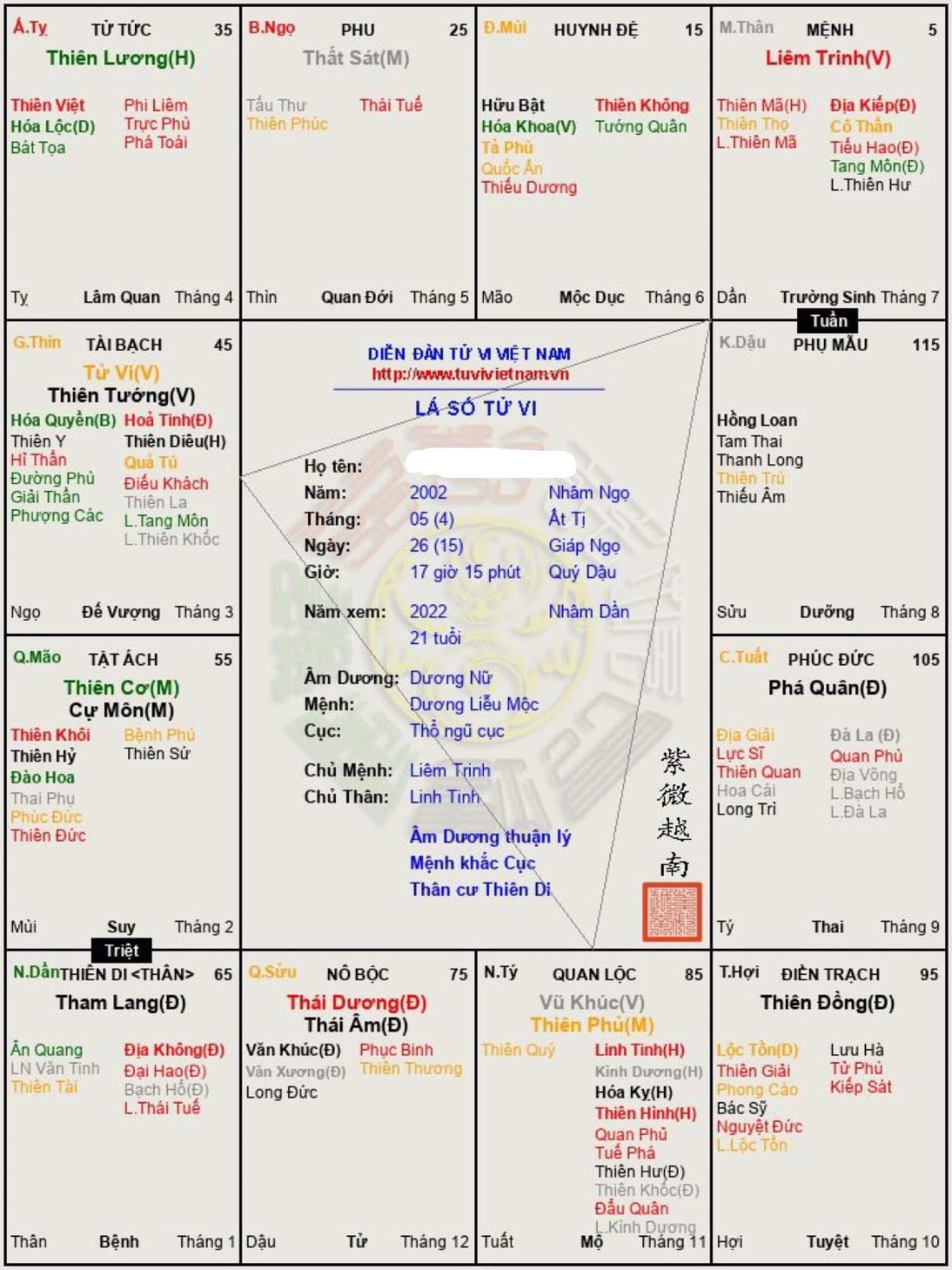 Đây là chuyên mục dành cho việc xem lá số tử vi. Các bài mang tính trao đổi học thuật xin vui lòng đăng trong mục Kiến thức tử vi.