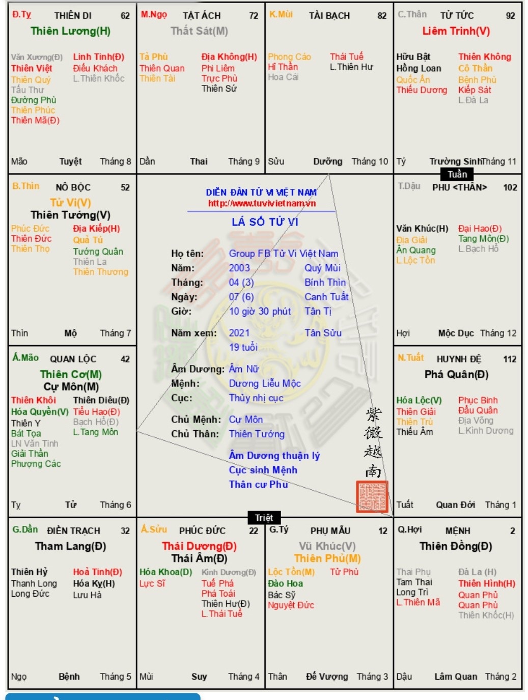 Đây là chuyên mục dành cho việc xem lá số tử vi. Các bài mang tính trao đổi học thuật xin vui lòng đăng trong mục Kiến thức tử vi.