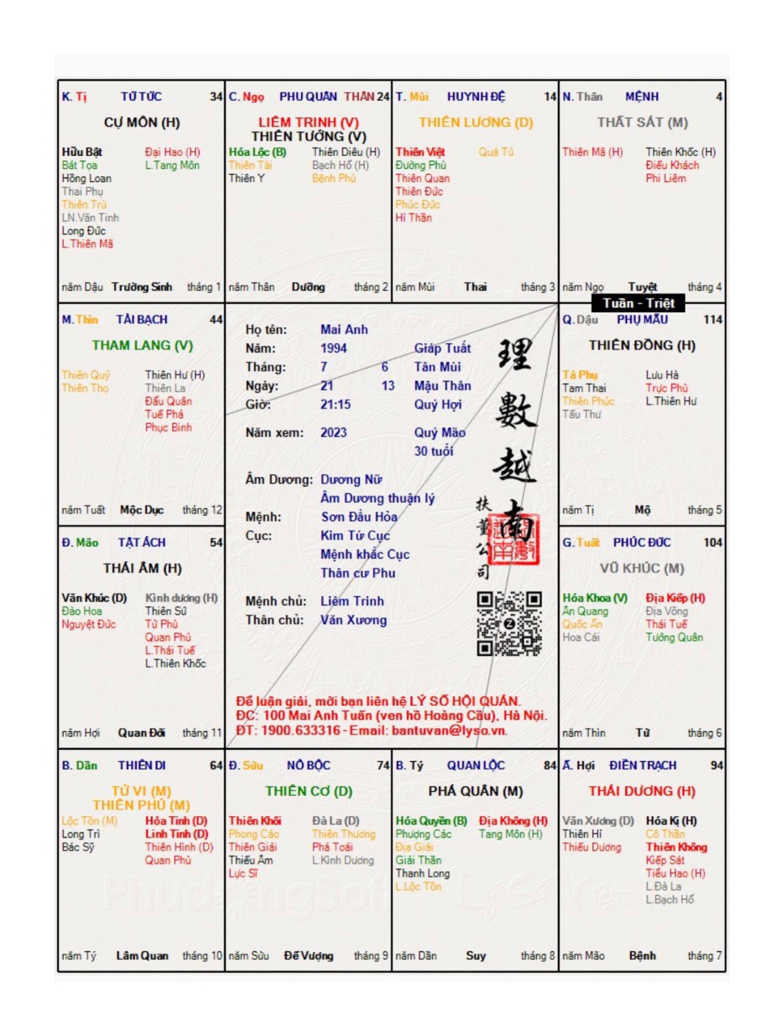 Bạn này sinh thường hay sinh mổ? Về tính cách thì đúng là tính cách của mệnh Thất Sát rồi : cương cường, độc lập, ko thích ai can thiệp, mừng giận thất thường, giận xong thì lại thôi như mặt trời sau cơn mưa...Mệnh ko có Tuần triệt thì tuyệt vời hơn, nhưng mệnh Sát Phá Tham thì dù sao vẫn hợp với nam giới hơn.