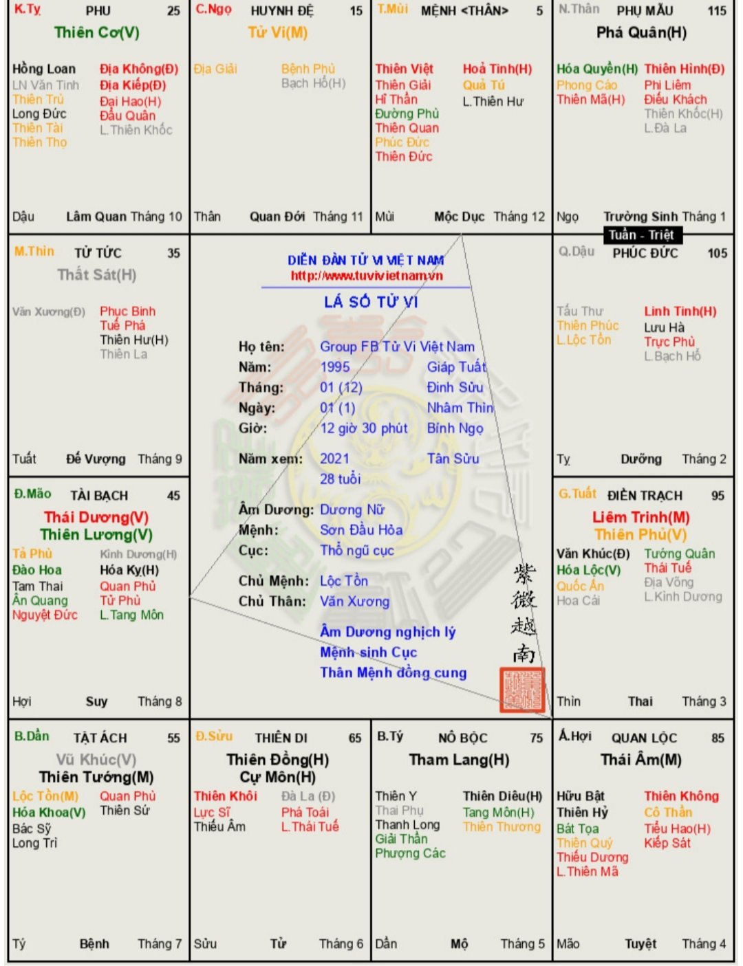 Đây là chuyên mục dành cho việc xem lá số tử vi. Các bài mang tính trao đổi học thuật xin vui lòng đăng trong mục Kiến thức tử vi.