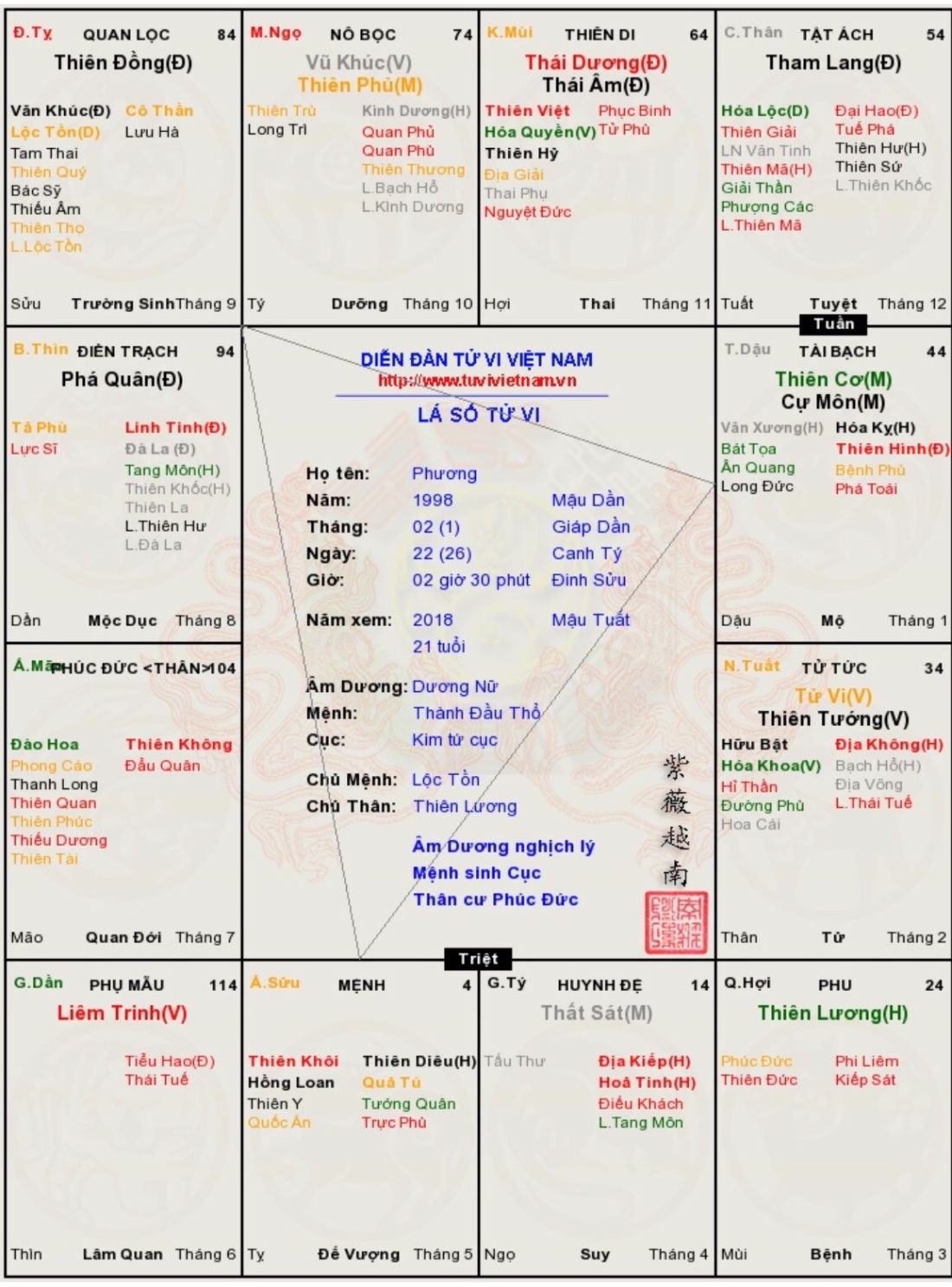Hình như 2 cung bạn nói ko dính dáng cung phu thì phảiAthena0404 đã viết: 07:36, 30/03/18 Cung quan với tài bạch ở đế vượng và trường sinh mà ko thấy vượng nhỉ![]()