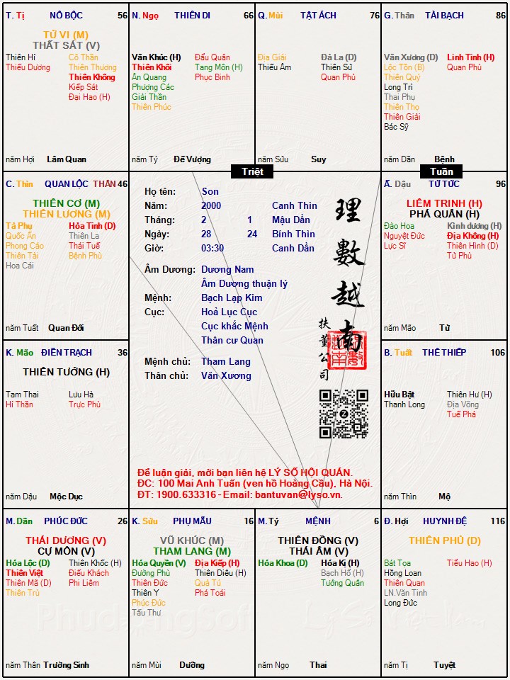 Đạo sỹ cho cháu hỏi về vận hạn, cuộc đời sắp tới của cháu được không ạ, tới giờ cuộc sống, công việc của cháu vẫn chưa ổn định dù là người có năng lực. Cháu buồn quá chú ạ. Đọc các bài viết của chú và trên diễn đàn, cháu biết cách Tướng ngộ Triệt là rất xấu, mà cháu lại còn mệnh Tuần thân Triệt nữa. Không biết cuộc sống tương lai sẽ thế nào? Cháu chờ thông tin của chú.