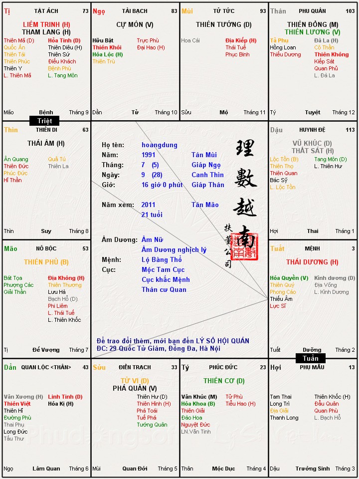 Đây là chuyên mục dành cho việc xem lá số tử vi. Các bài mang tính trao đổi học thuật xin vui lòng đăng trong mục Kiến thức tử vi.