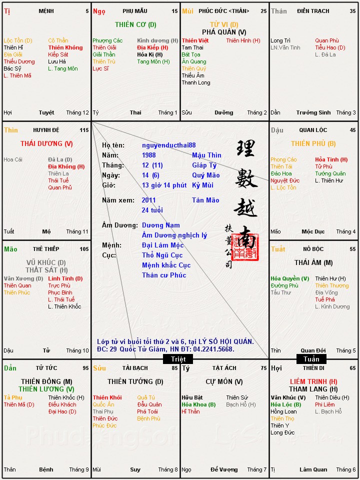 Đây là chuyên mục dành cho việc xem lá số tử vi. Các bài mang tính trao đổi học thuật xin vui lòng đăng trong mục Kiến thức tử vi.