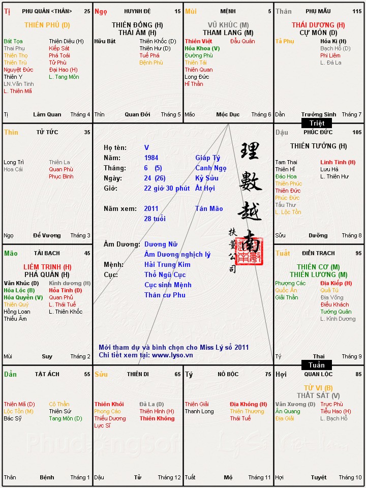 Yêu cầu: người được luận giải phải là chính chủ lá số hoặc người thân trong gia đình. Yêu cầu phản hồi để nghiệm chứng.