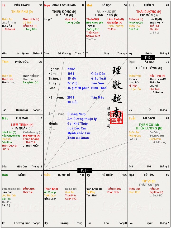 Đây là chuyên mục dành cho việc xem lá số tử vi. Các bài mang tính trao đổi học thuật xin vui lòng đăng trong mục Kiến thức tử vi.