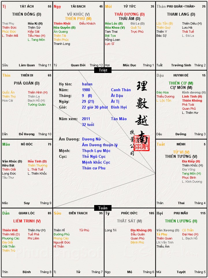 Kính bác Phượng Hoàng Lửa. Lá số của cháu không hợp, nhờ bác xem cho em gái cháu ạ. Tuổi Ất Hợi, thân cư Tài Bạch
