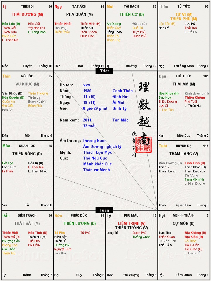 Tình xin cung cấp 1 lá số lùi sĩ đặng các chị em dễ dàng hình dung. Anh chị nào link giúp Tình lá số giờ tý đầu tiên (0h) ngày 19/11/1981