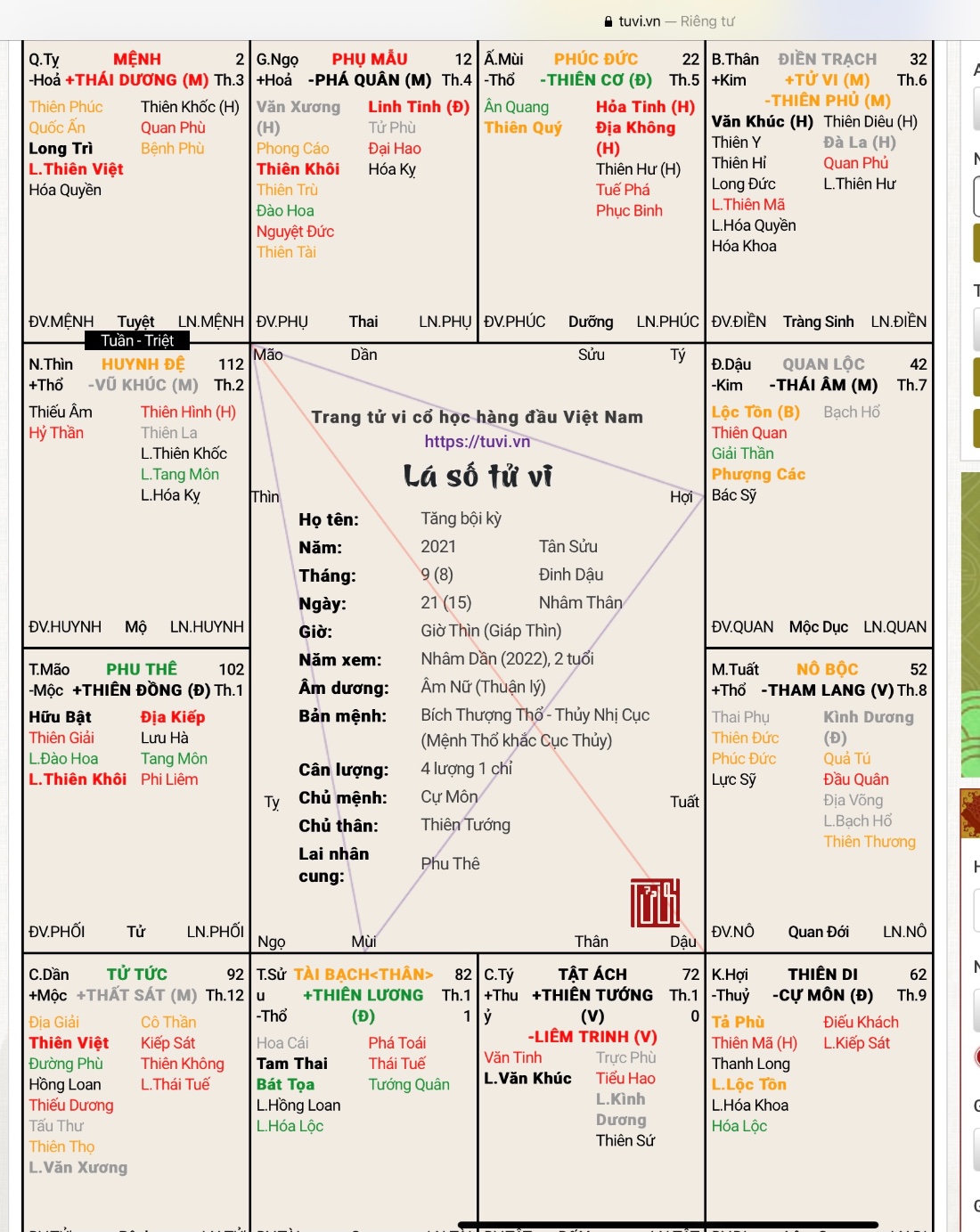 Ráng qua cung Thân qua Bạch Hổ là sẽ được đền đáp nha. Chứ còn Tang Môn là còn khổ vì nó là nghiệp tiền kiếp.Yeutanhuong đã viết: 11:35, 07/03/22Em thì nghĩ Quốc ấn là con dấu nên ở mệnh tài quan cực kì tốt.hoavan004 đã viết: 10:28, 07/03/22Còn quốc ấn ở tài nghĩa là sao vậy yeutanhuong?Yeutanhuong đã viết: 10:17, 07/03/22 Bác xem phúc Đức hơi xấu xem mộ phần có vấn đề gì không.