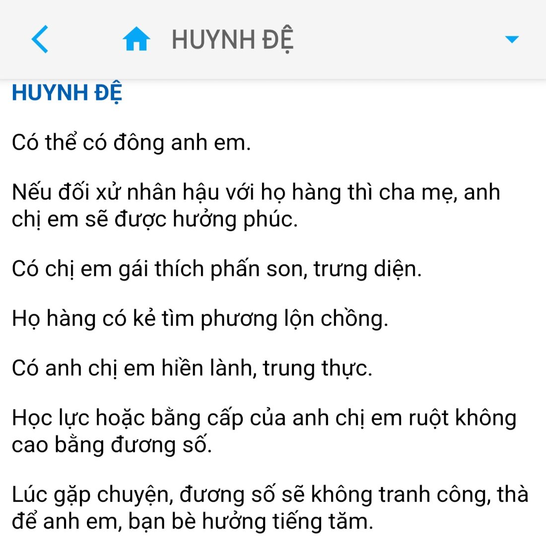 Vâng bác, em có suy nghĩ như này nếu lá số đúng thì luận phải tương đối chính xác ở quá khứ mỗi người. Theo em thấy có thể có những lá số bị vận hạn ngay từ lúc sinh ra khiến bản thân người đó phải sinh sớm mổ sớm cũng có thể muộn hơn do cung tật ách, em ko biết điều này có trong tử vi hay ko nhưng chuyện gì cũng có thể cũng như việc sinh đôi, sinh ba vậy. Em hồi nhỏ em cũng học cùng 2 bạn sinh đôi cùng lớp. Người chị thì bị tật với yếu đuối còn người em thì khỏe mạnh. Em ko có ý tranh luận việc theo giờ sinh như nào đúng mà luận tư vi ít nhất nó tương đối chính xác ở quá khứ mỗi người đã trải qua 30-40 năm tuổi. Nếu ép buộc mình tin vào luận quá khứ không đúng liệu các bác muốn tin vào lá số ấy ko? Thú thật em cũng ko dõ giờ sinh của mình là giờ nào cả nhưng em chắc chắn ở mệnh em có thái âm, hóa kị, ở thiên di có thiên đồng, còn ở những cung khác em thấy tương đối kể cả giờ Mùi luận em khắc mẹ vs vợ vậy mà đến giờ em có thể ở cạnh mẹ em lâu như vậy. Thậm chí còn giúp mẹ em bao nhiêu việc lo toan gia đình mà không phải do em mà bố vs anh em gây chuyện. Nếu nói ra, em ko biết có đúng ko nhưng tình cảm mẹ con, mẹ em có lẽ coi em như phần an ủi và chỗ dựa tình thần cuối cùng của chính mình sau khi trải qua nhiều đau khổ cuộc sống và từ bố vs anh em gây nhiều thất vọng, mới năm ngoái th bao công sức mẹ em lo cho anh em vào quân đội anh em quyết ra quân, mẹ rất khổ tâm dù vậy em luôn nói lời động viên, lời cải thiện tâm trạng về nhân sinh, hay giúp đỡ cv,...! Bản thân em cũng chưa bao giờ đòi hỏi mẹ em làm cho em điều gì. Thậm chí bây giờ tài sản nhà cửa đó mẹ em luôn nói là cho con cái. Nhưng em ko nghĩ vậy và cũng không nghĩ rằng mình sẽ sở hữu mà tham lam, tranh dành gì cả. Cũng có thể là em sẽ khắc vợ mình thay mẹ theo lá số. Dù vậy lá số luận có đúng hay ko thì chưa chắc chắn十面埋伏 đã viết: 10:59, 06/09/24 Diễn đàn là xã hội thu nhỏ.