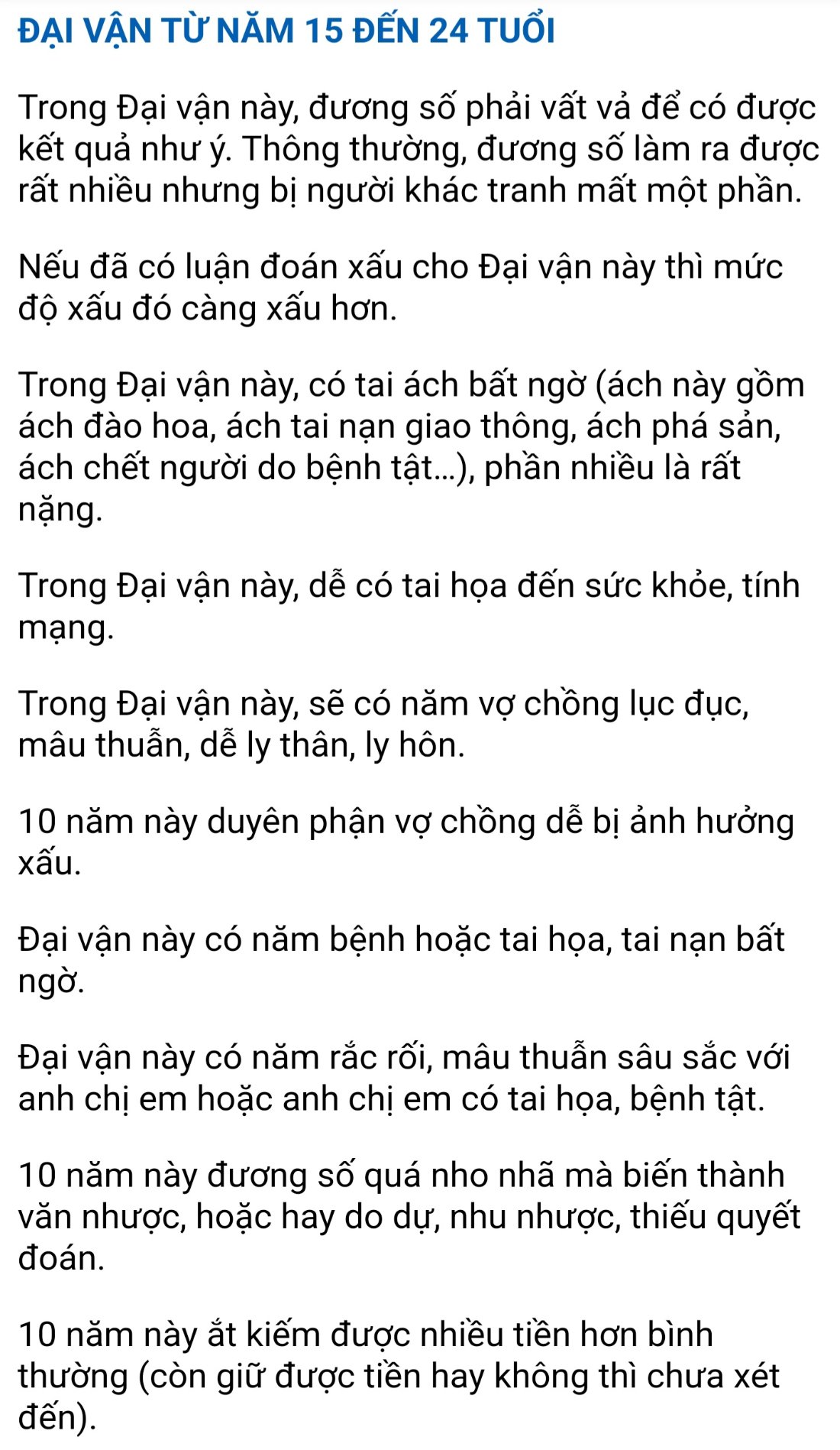 Thứ 4 đại vận từ 15 - 24, cái dòng thứ 2 từ dưới lên. Bản thân em hồi năm lớp 11 hướng ngoại có sự chuyện biến dõ dệt về tính cách sau khi mẹ em dạy dỗ rất nặng liên quan đến học hành. Và kể từ đó