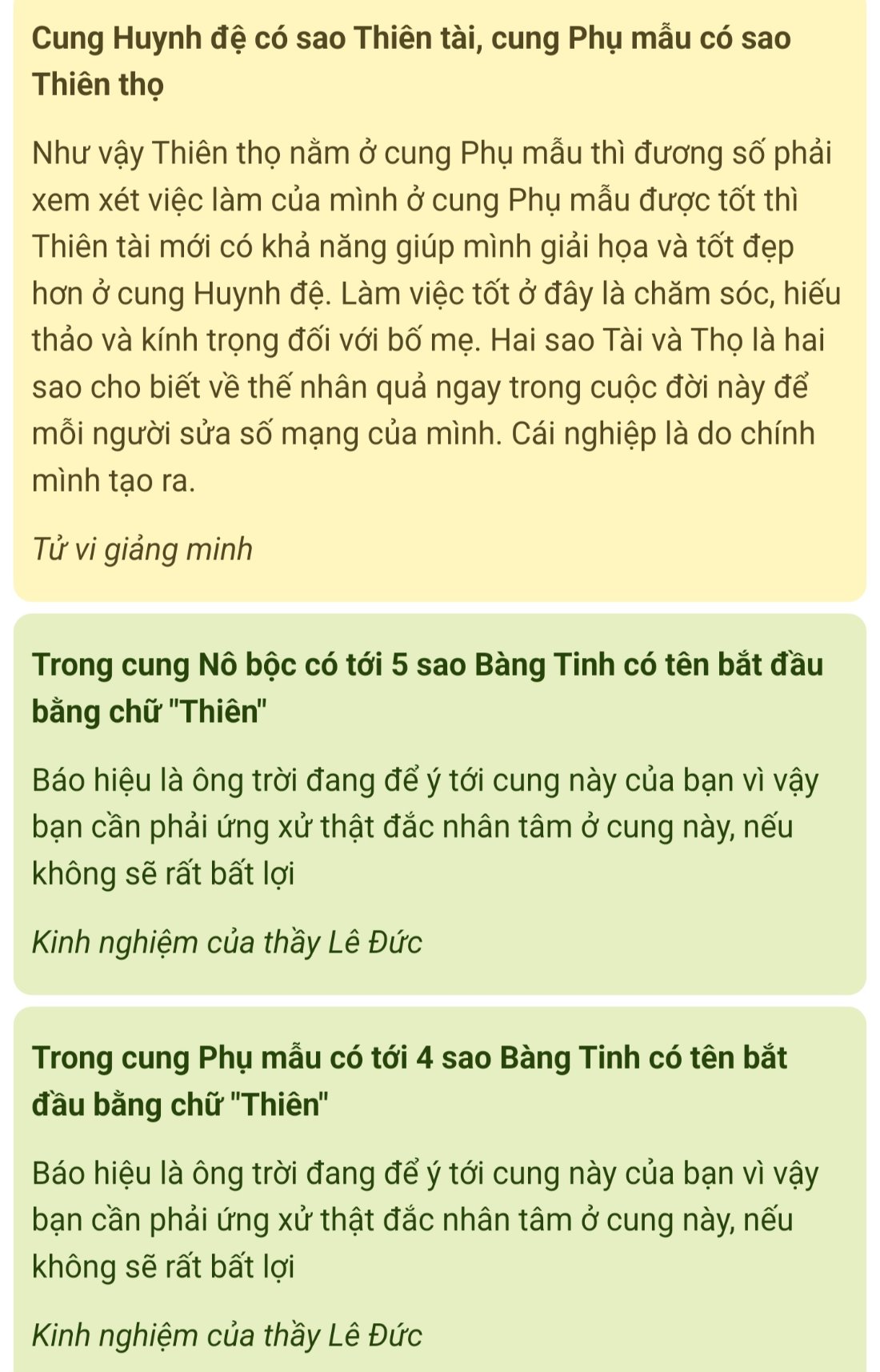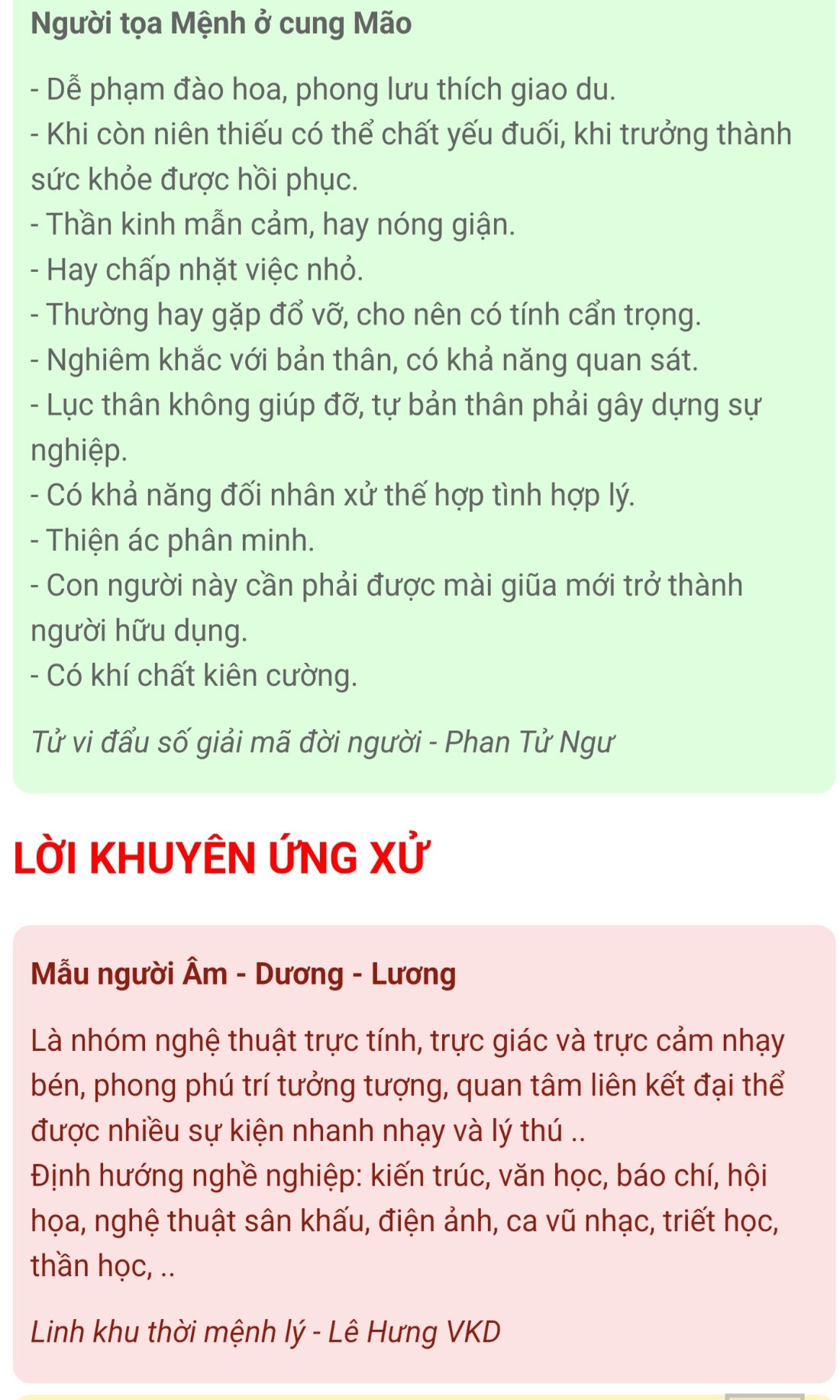 Sau một thời gian, em vẫn tìm hiểu về lá số của mình. Vs em thật sự giờ Ngọ rất khác, khác đến 70-80% chỉ đúng ở một phần nào đó ở tật ách, và thiên di. Có bác nói vs em tại sao không tin giờ sinh mổ đẻ bị động của mình, ông trời làm vậy phải có lý do nhưng thật sự khác nhiều quá. Em suy ngẫm từ ngày xưa ông thầy coi tướng cũng nói vs em là em có tính hơi phụ nữ. Đúng em khẳng định em có mà điều này chỉ có sao Thái âm ở mệnh. Em có coi sao Thiên Tài vs sao Thiên Thọ để an nhân quả ở 2 lá số, em tự hỏi quả thực số em khổ nhưng có người gánh đó là bố mẹ em. Dù nhà rất khổ nhưng bố mẹ cũng ko bao giờ để em đói hay thiếu thốn thứ gì (sách cũ, quần áo cũ, quần áo tự giặt trong cái cách mà người có thể không cần, học phí, ...). Nếu giờ Ngọ là thân ở Mệnh thì ng ta phán là nghèo thì cả đời nghèo, giàu thì cả đời giàu. Vậy gia đình em bây giờ khá giả từ khi không có gì như vậy liệu có ứng vs lời này được ko? Tuy rằng, em rất tiết kiệm không phải vì em ko tiêu, mà vì em học được từ tính cách tiết kiệm của mẹ em, chi cái gì cần chi chứ không lãng phí vô ích. Vs em cần em lấy, không thì hơn 1 chút cũng không! Vs lại, em cũng dạng an nhàn vì mẹ em lo vs yêu thương em. Thấy em khổ là để mẹ! Nếu nói ra nghiệp em sao mẹ em gánh! Mà bên giờ Ngọ nói em ở Huynh đệ có sao Thiên tài, thiên thọ nói anh em, thật sự anh em số khổ hơn em, anh em lo cho mình còn không nổi nữa, em cũng chưa bao giờ thấy đc nhờ vả gì anh ấy cả. Mặc dù em vẫn yêu thương gia đình mình chứ không ghét bỏ, nếu ai trong nhà có chuyện gì là em quan tâm hết sức. Vậy nếu luận là giờ Mùi em được thấy mình đc bố mẹ giải họa nhiều, sau khi chọn chứ hiếu. Còn anh em thì chưa thấy gì, em cũng cảm thấy em ở nhà thay anh ấy quan tâm gia đình anh ấy sống tốt hơn cũng giúp đỡ em chút việc trong cuộc sống. Còn việc này nữa, mới đây thôi em cũng tự hỏi em thích giúp đỡ ng khác không? Chắc là em bình thường kiểu giúp đỡ trong phạm vi em cảm thấy chấp nhận được chứ không phải thuộc dạng thích giúp đỡ. Ví dụ: đợt có bác gái mắt kém, nhờ em viết hộ, em đồng ý giúp viết nhưng sau khi bác ấy nói cần 3 tờ em từ chối luôn và đưa ra lời gợi ý nhờ giúp đỡ khác. Hay cho tiền người ăn xin, thi thoảng em cho nhưng có lúc trong túi em có tiền cũng ko cho dù ng ta xin. Vậy thì có gọi là thích giúp đỡ như ở giờ Ngọ luận ko? Suy nghĩ lại em thấy mình vẫn thấy giờ Mùi đúng vs em hơn, và m.n có thấy em nhạy cảm sau khi bình luận này không? Em cảm thấy có vì những việc này nói ra hay không ai quan tâm? Vậy nói ra làm gì? Lý do của em muốn tự mình xác nhận và một chút sự chú ý