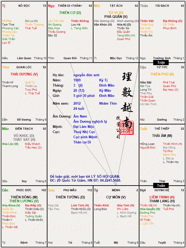 Đây là chuyên mục dành cho việc xem lá số tử vi. Các bài mang tính trao đổi học thuật xin vui lòng đăng trong mục Kiến thức tử vi.