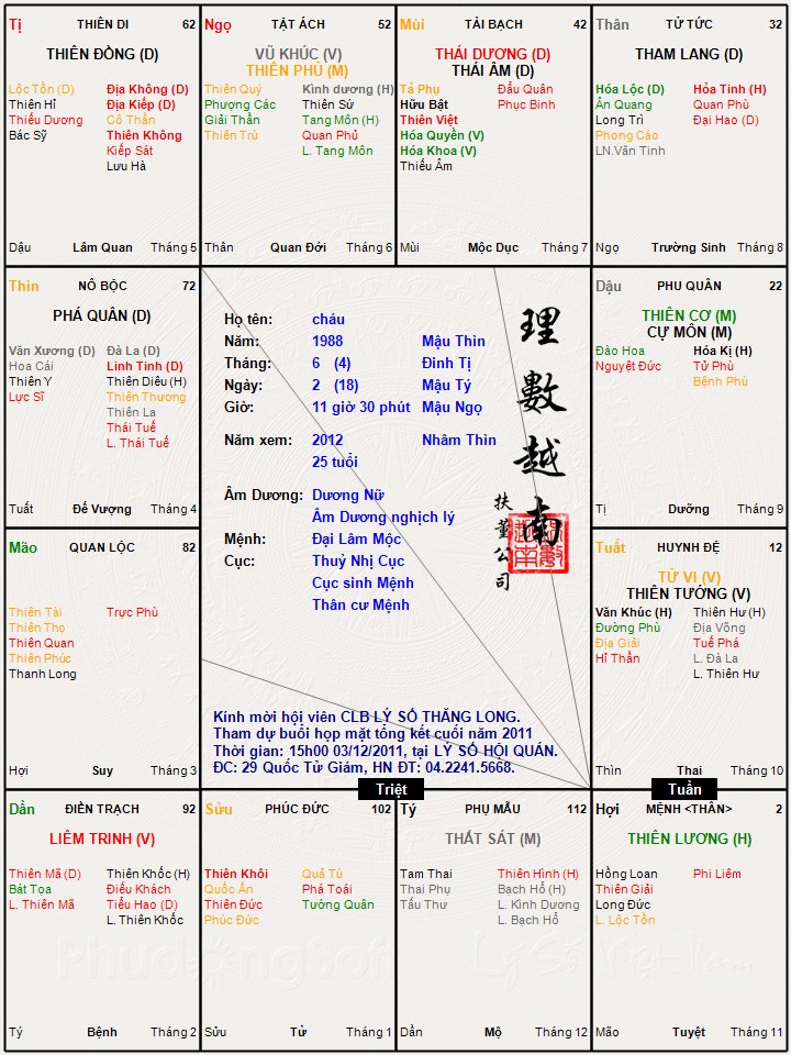 Đây là chuyên mục dành cho việc xem lá số tử vi. Các bài mang tính trao đổi học thuật xin vui lòng đăng trong mục Kiến thức tử vi.