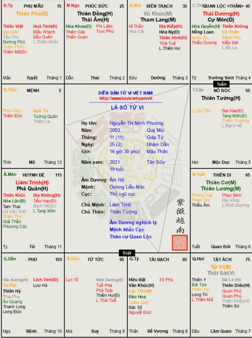 Đây là chuyên mục dành cho việc xem lá số tử vi. Các bài mang tính trao đổi học thuật xin vui lòng đăng trong mục Kiến thức tử vi.
