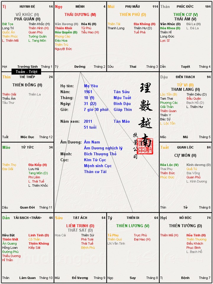 Post giùm bạn lá số, không hiểu bạn muốn xem gia đạo hay sức khoẻ?