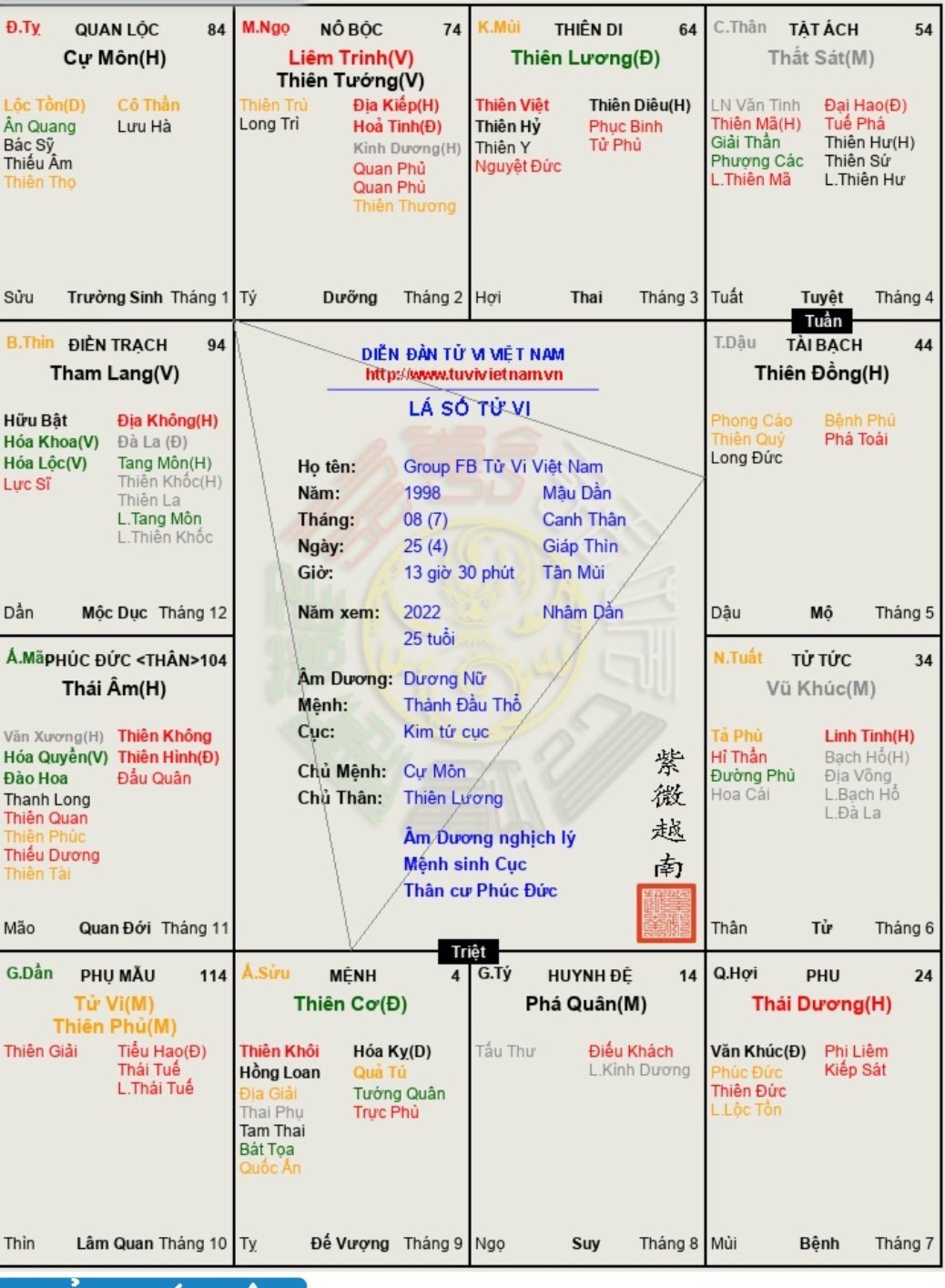 Đây là chuyên mục dành cho việc xem lá số tử vi. Các bài mang tính trao đổi học thuật xin vui lòng đăng trong mục Kiến thức tử vi.