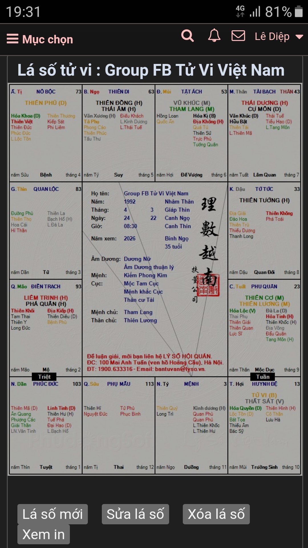 Đây là chuyên mục dành cho việc xem lá số tử vi. Các bài mang tính trao đổi học thuật xin vui lòng đăng trong mục Kiến thức tử vi.