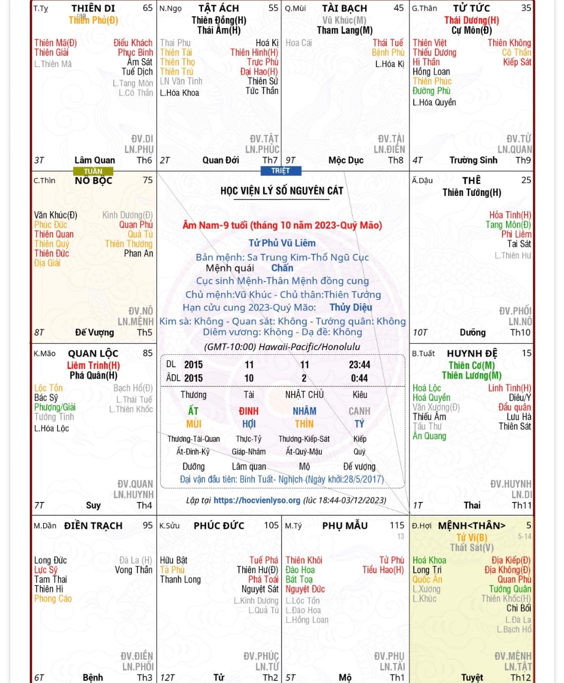 11-11-2015 23:44p Dương lịch ở hawaii sẽ tương ứng 2-10-2015 0:44p Âm lịch.
