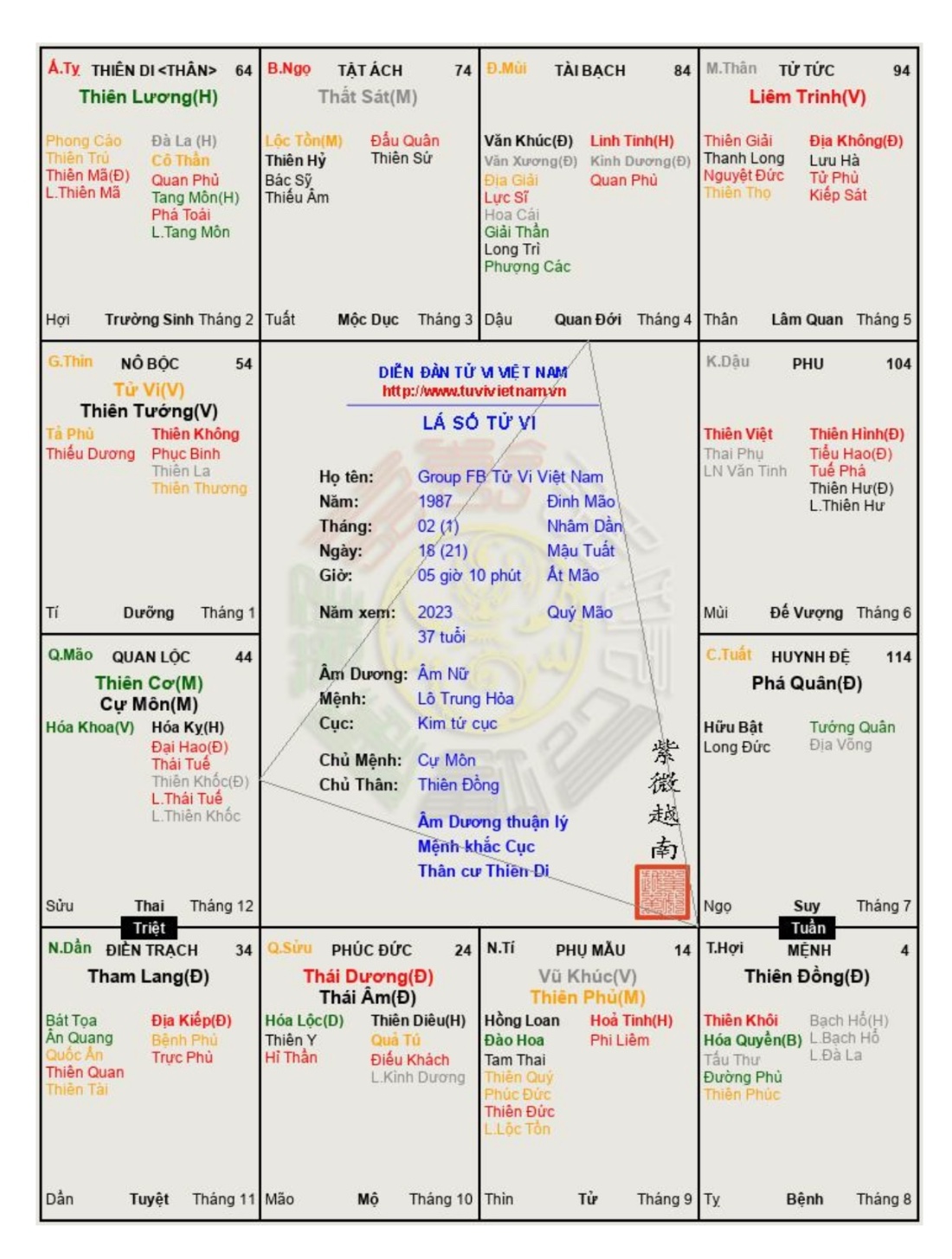 Đây là chuyên mục dành cho việc xem lá số tử vi. Các bài mang tính trao đổi học thuật xin vui lòng đăng trong mục Kiến thức tử vi.