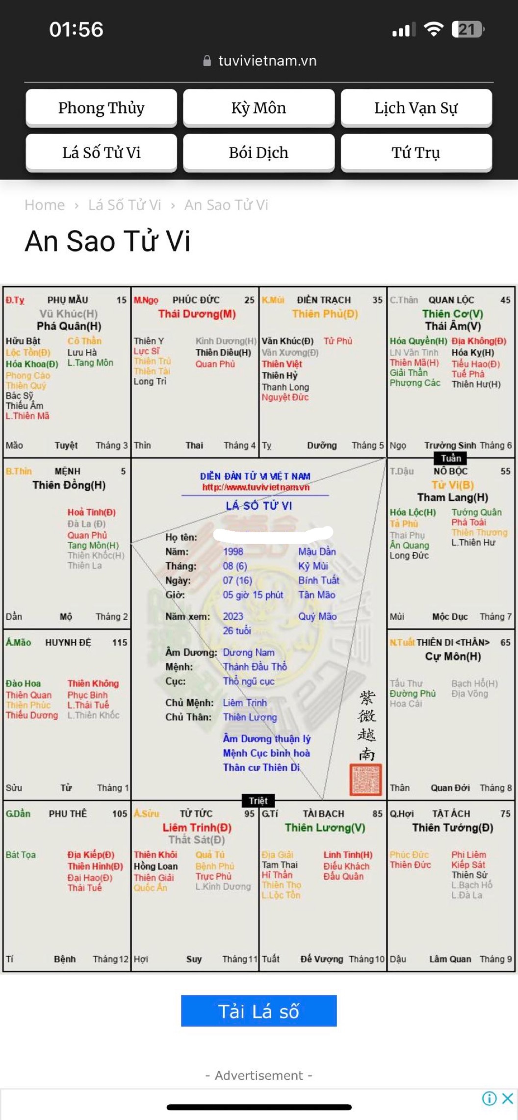 Đây là chuyên mục dành cho việc xem lá số tử vi. Các bài mang tính trao đổi học thuật xin vui lòng đăng trong mục Kiến thức tử vi.