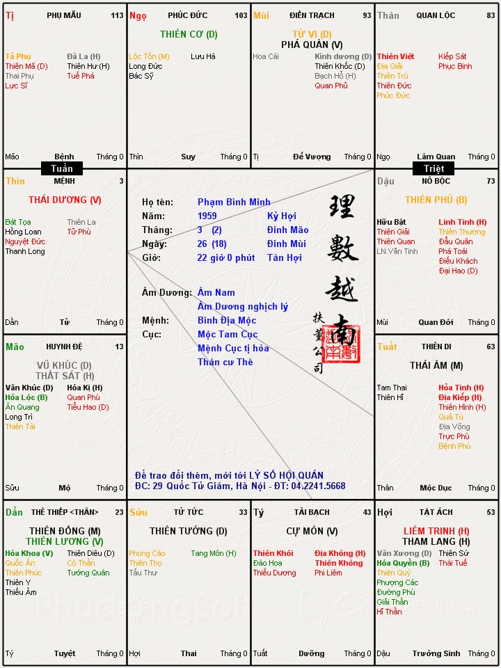 Đây là chuyên mục dành cho việc xem lá số tử vi. Các bài mang tính trao đổi học thuật xin vui lòng đăng trong mục Kiến thức tử vi.