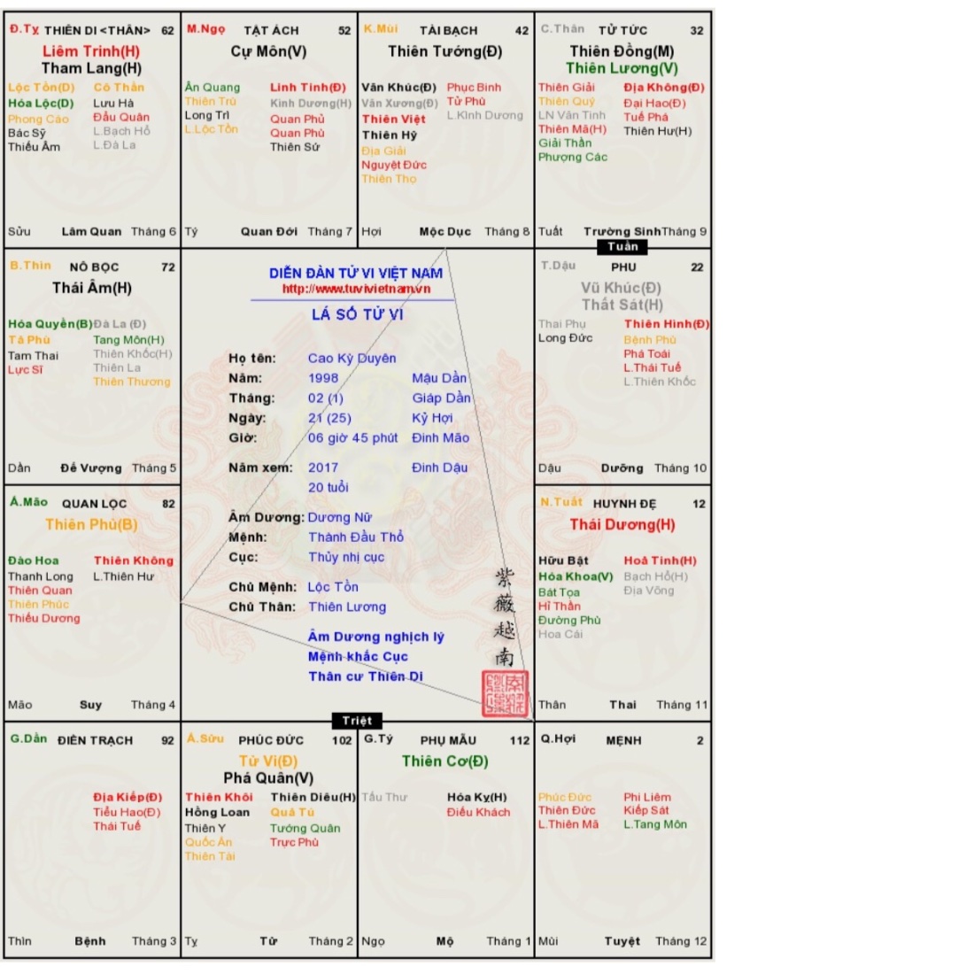 Đây là chuyên mục dành cho việc xem lá số tử vi. Các bài mang tính trao đổi học thuật xin vui lòng đăng trong mục Kiến thức tử vi.