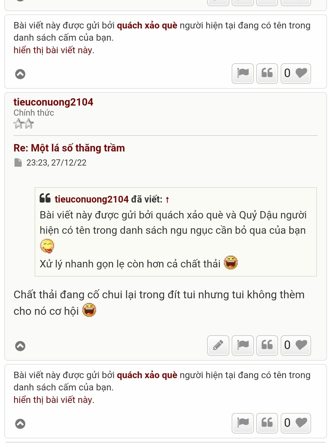 Bài viết này được gửi bởi quách xảo què và Quỷ Dậu người hiện có tên trong danh sách ngu ngục cần bỏ qua của bạn