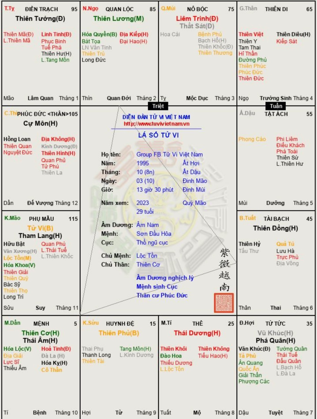 Đây là chuyên mục dành cho việc xem lá số tử vi. Các bài mang tính trao đổi học thuật xin vui lòng đăng trong mục Kiến thức tử vi.