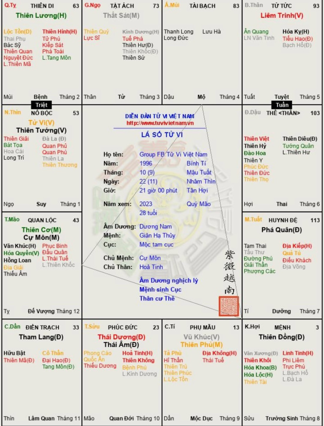 Đây là chuyên mục dành cho việc xem lá số tử vi. Các bài mang tính trao đổi học thuật xin vui lòng đăng trong mục Kiến thức tử vi.