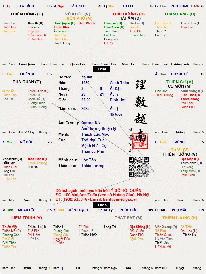 Lượng người thứ 02 đầy đủ thông tin dữ liệu, đường link rỏ ràng.phaquan19 đã viết:Chào bác Thien Thai, cháu không đủ 100 bài viế và 50 lần đc cảm ơn nhưng cháu không phải là thành viên tạo nick mới để quấy nhiễu nên vẫn mong bác châm chước và lận giải vận hạn năm nay giúp cháu.![]()