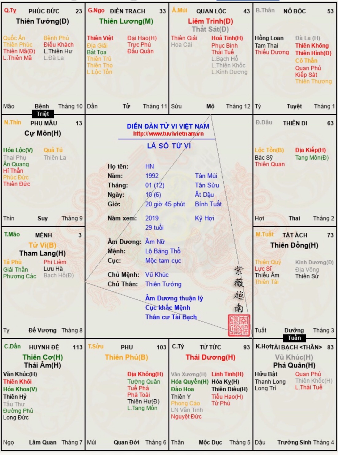 Ls em nói chung theo anh thì cũng là lá số tốt em ạ . ĐV đương thời bảo anh biết em có 10 năm tốt đẹp trước mắt , năm nay là năm công thành danh toại . Nên anh nghĩ em sẽ có cs rất hạnh phúc , ít nhất cũng đến hết ĐV này . Còn những ĐV sau , tốt hay xấu , thì tùy thuộc vào chuyện em cố gắng như thế nào trong ĐV này .