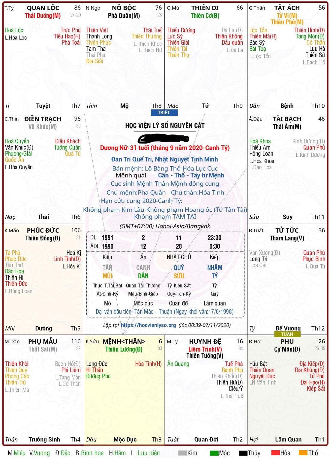 Cảm ơn anh nhiềuthien_quan đã viết: 19:58, 05/11/20hacvt9a đã viết: 09:34, 05/11/20 Mong được hữu duyên với anh Thiên quan.Mong anh đánh giá tổng quan về lá số của em và các đại vận phu thê,tật ách có tốt không,số em có xuất ngoại được không,đường vợ con có tốt không?.Có thầy bảo đại vận ách của em bị tiểu nhân gây khó khăn nguy hiểm( sao lưu hà phục binh).