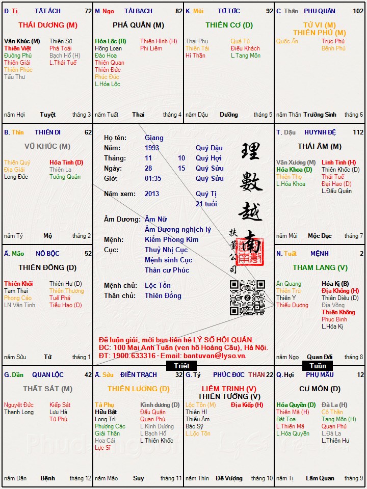 Hehe, thks anh. Bạn em nó xem xong đang kêu gào thảm thiết là kb nó đi tắm trắng hay đại tu 3 vòng mà anh bảo nó thay đổi ghê lắm đấy ạcun_hl đã viết:Anh ơi, đây là lá số bạn em, tứ quí đây ạ.