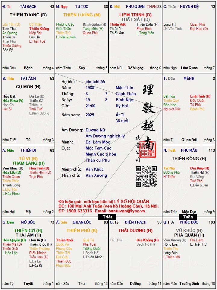 linhnk70 đã viết:hồi trước mình cũng đã xem, nhưng lá số đó chưa đúng giờ sinh. Mong lần này có thể xem lại giúp minh